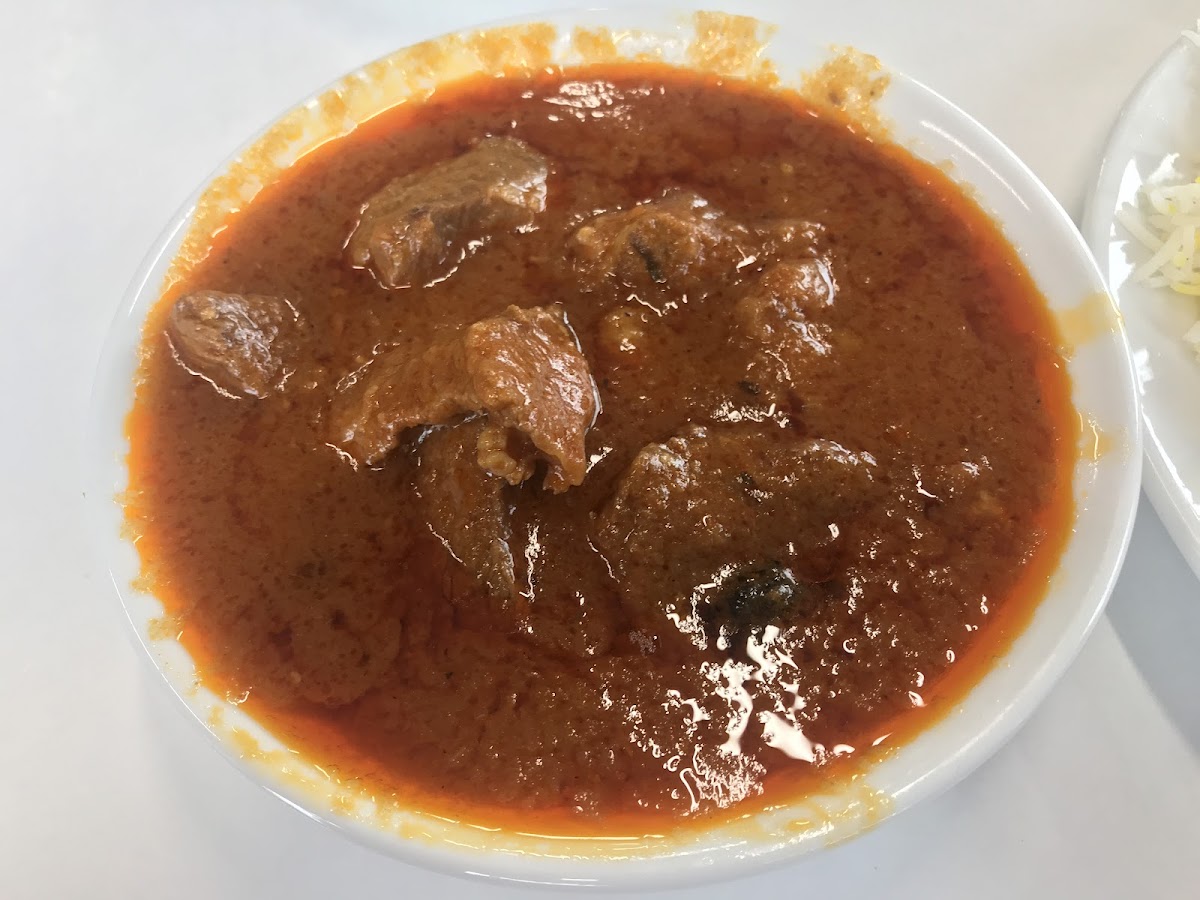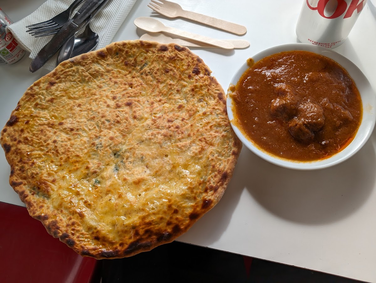 “Came here for lunch with a colleague and lord almighty, this was gorgeous! I had a cheese naan and lamb masala, and this wasn't like any masala I had before, and I'm pretty sure it'll ruin future masalas too, because it was gorgeous! The lamb fell apart and the flavours were bouncing everywhere! It wasn't the red food coloured bland stuff you get from a standard takeaway, this had depth and passion into it! The cheese naan was huge, tore apart nicely and the string pull was on point! Had a vegetable samosa too with a salad and you know a place is good when even their salad is tasty! The service was quick, pay after eating and the guys were friendly, welcoming and even remembered what we had ordered, and hour later and after many people later. I highly recommend here to anyone, lunch or dinner! The only downside which they can't control is parking is pretty awful down the side road so just find a spot if you can.”